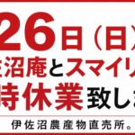 4/26(日)は伊佐沼庵とスマイリーは臨時休業します